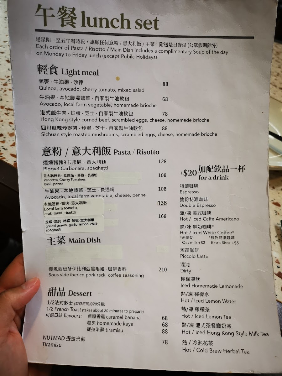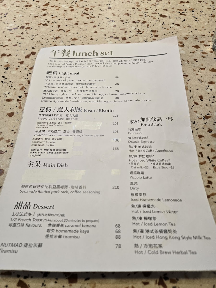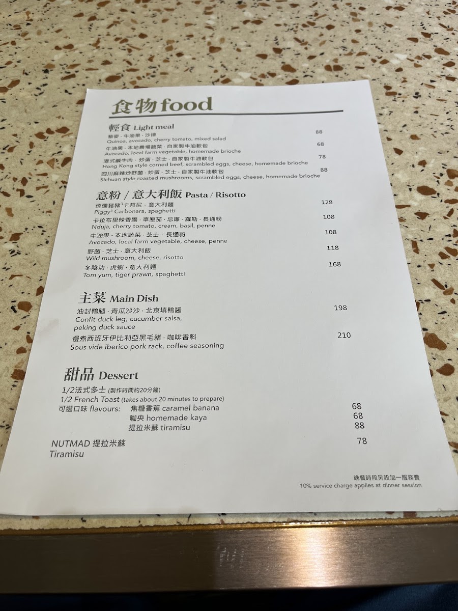 Overall, Nutmad Hong Kong’s menu presents a wide array of options that cater to various tastes, from hearty meats to delicate desserts and satisfying pastas, making it a great choice for any dining occasion.